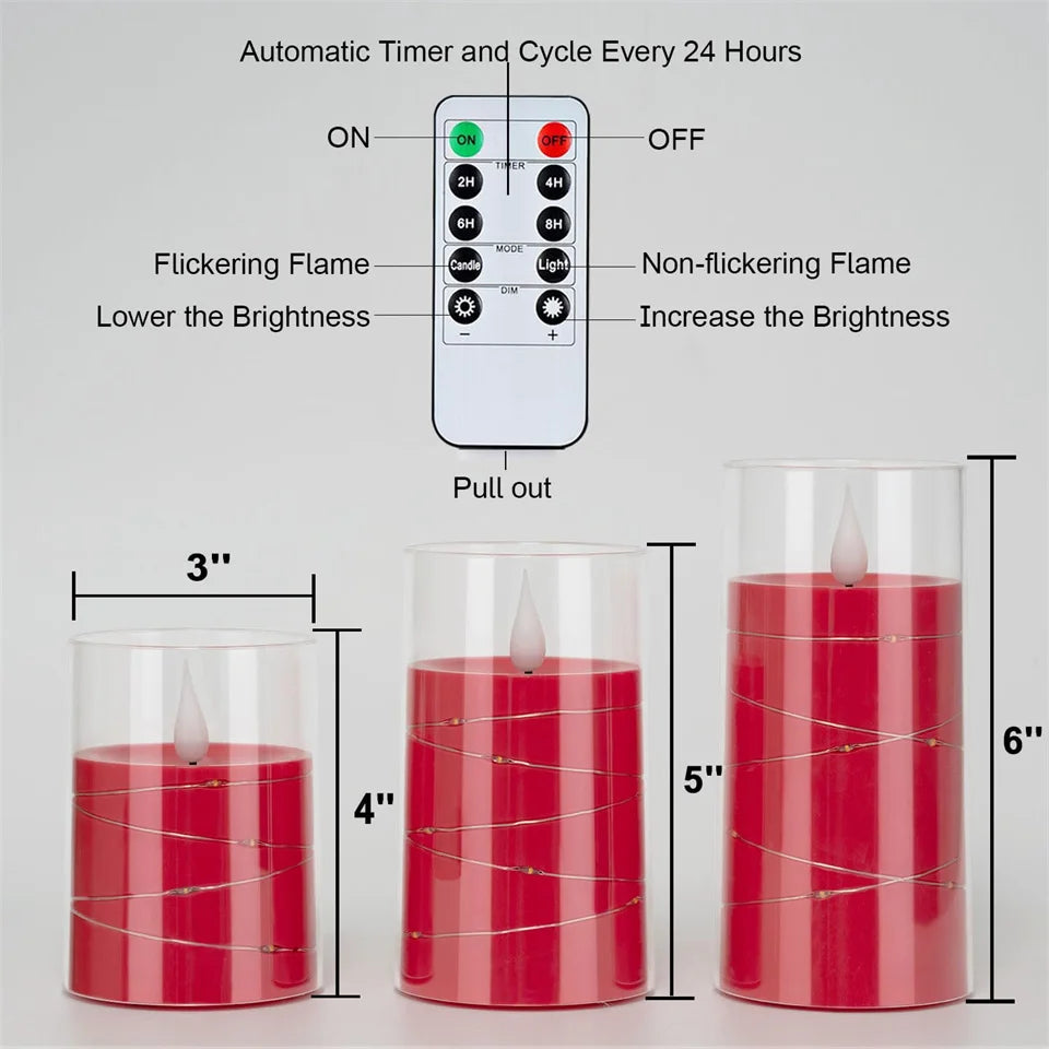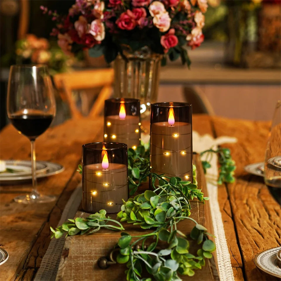 3Pcs Flameless LED Electronic Candle Dropping Wax Tea Light Realistic Flames Led Lamp Christmas Halloween Wedding Home Decor