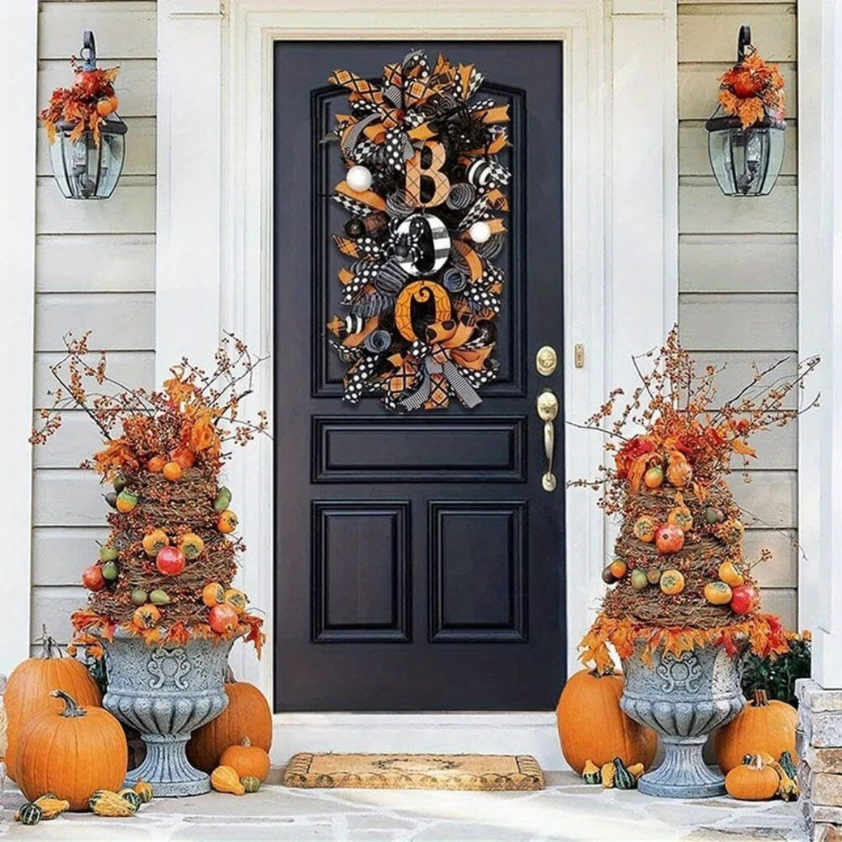 Halloween Swag Wreath, Autumn Wreath, Fall Boo Swag Wreaths, Scary Front Door Ornaments, Halloween Spider Mesh and