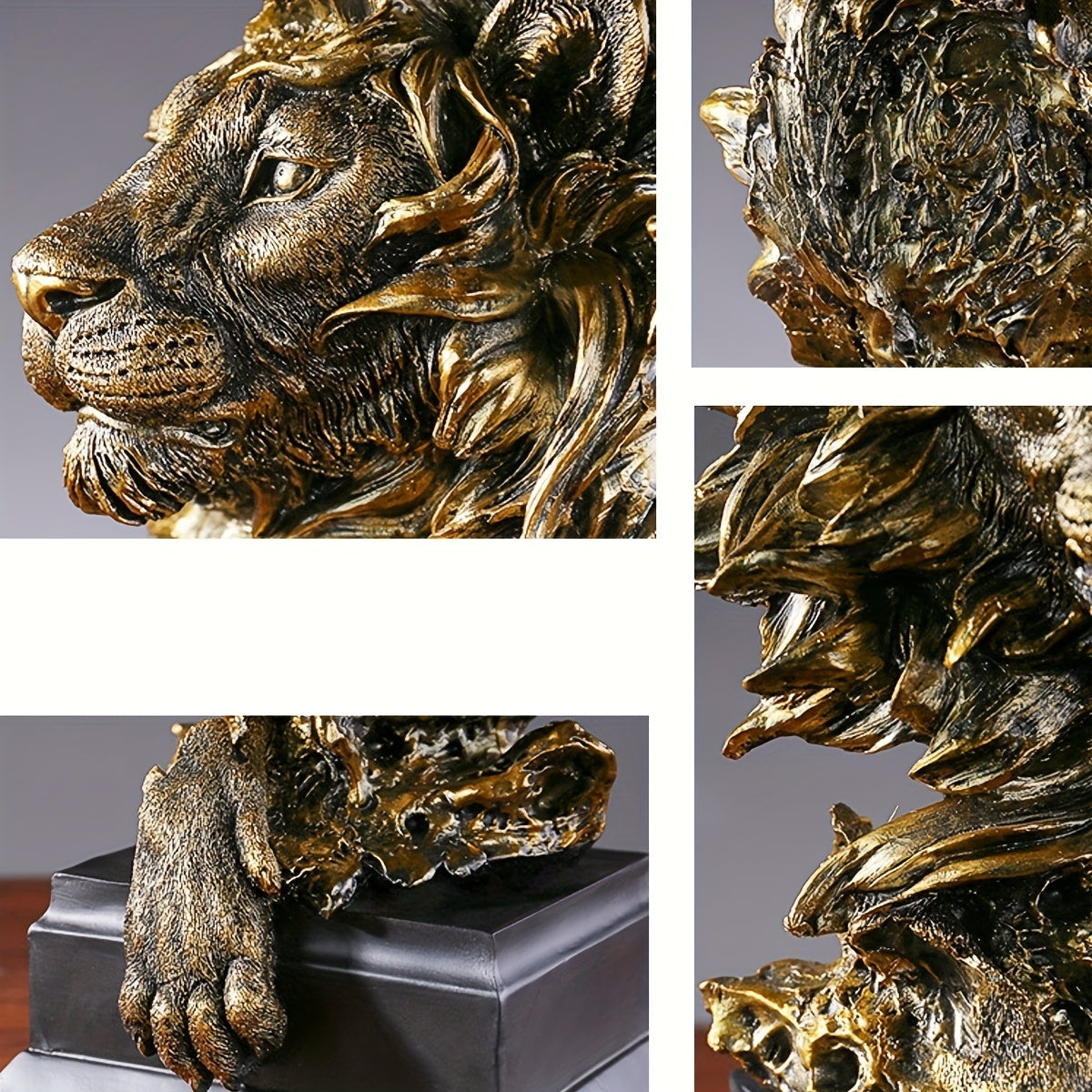 · Exquisite Design: This stunning golden resin lion statue is intricately designed to add a touch of luxury to any room.