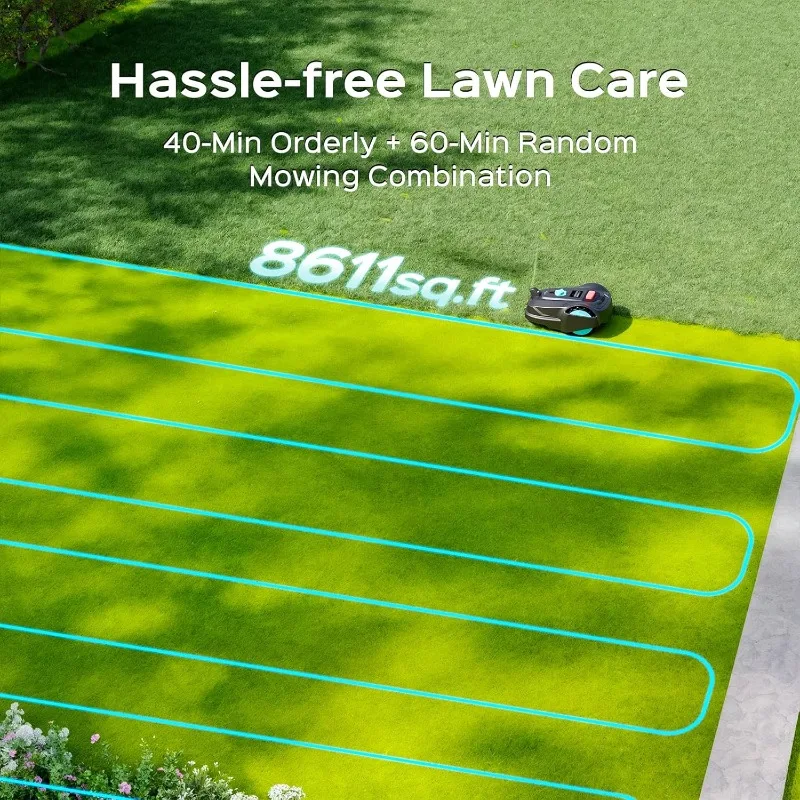 【GPS System + 3D Vision Navigation】M800Plus is equipped with an upgraded GPS system+ 3D Vision technology. Its AI vision aids boundary recognition—identifying non-lawn areas and auto-detecting lawn edges. Whether you are a first-time user or a lawn care expert, you can enjoy a seamless wireless experience from day one. Let you say goodbye to boundary cables and complex map settings. Note: Fit for Clear-Boundary Lawns.