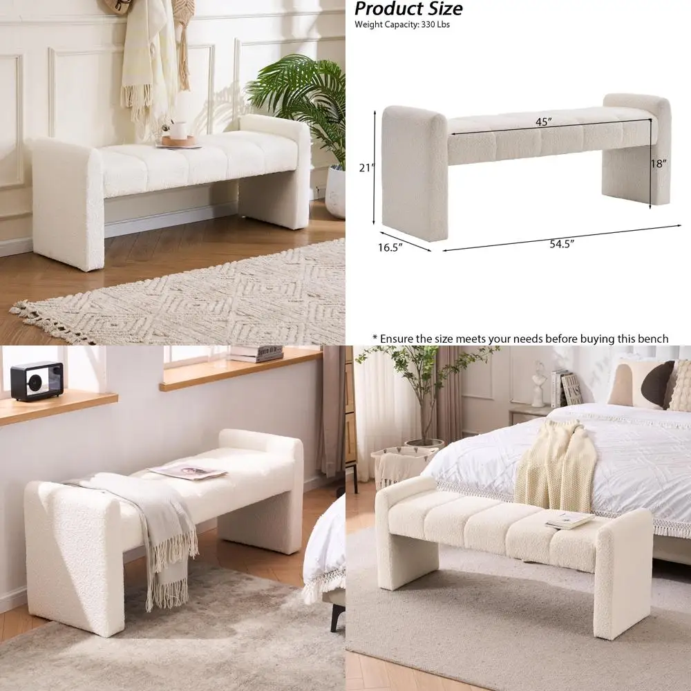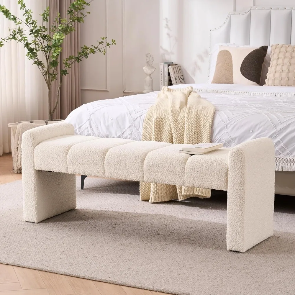 modern upholstered bed end bench with channel tufting, comfortable ottoman for living spaces and hallways