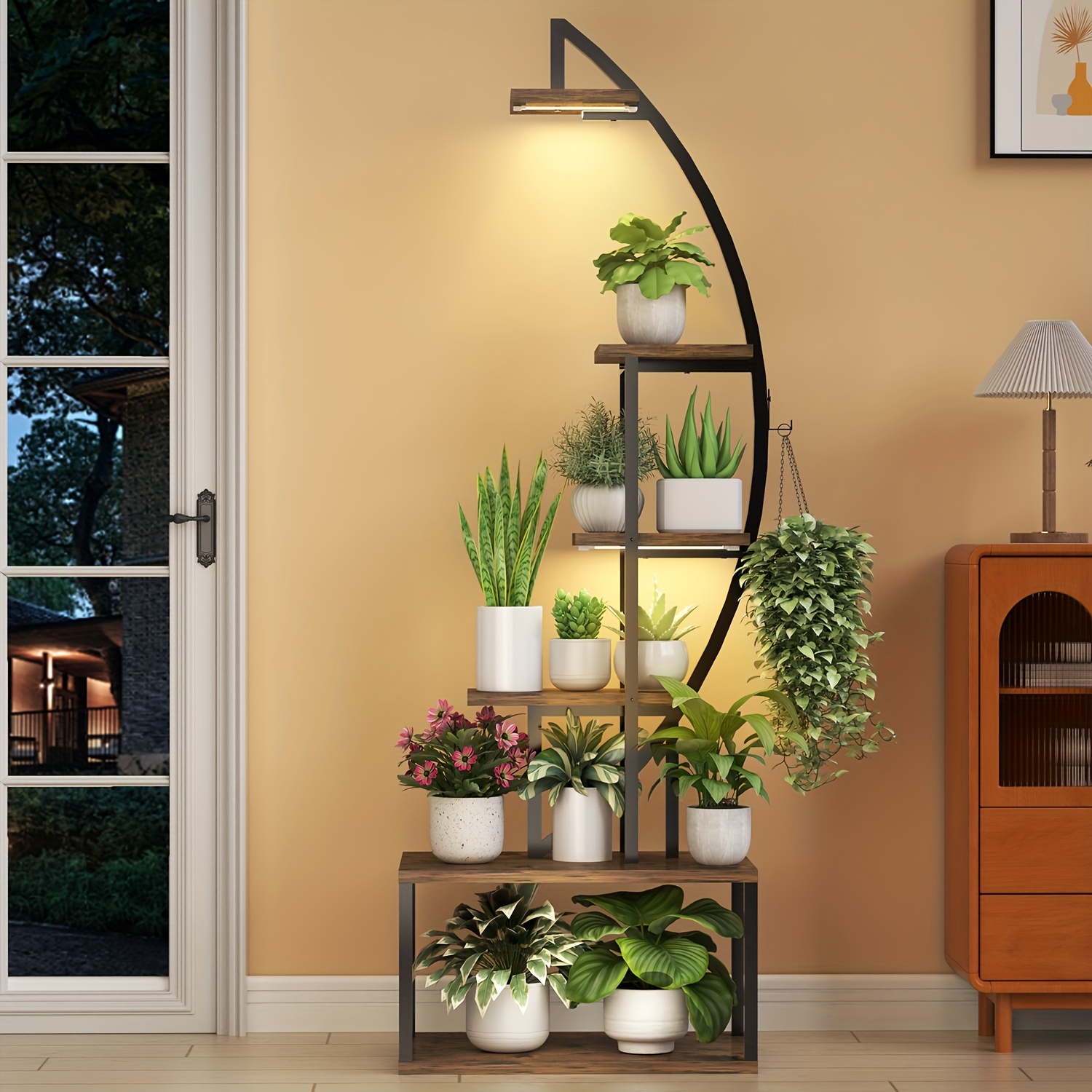 Spacious 64.5" Tall Corner Plant Stand with Grow Lights - Multi-Tiered Metal Shelf for Indoor Plants, Classic Style with Wooden Accents, Ideal for Living Room, Balcony, Patio & Garden Decor, Christmas Decor